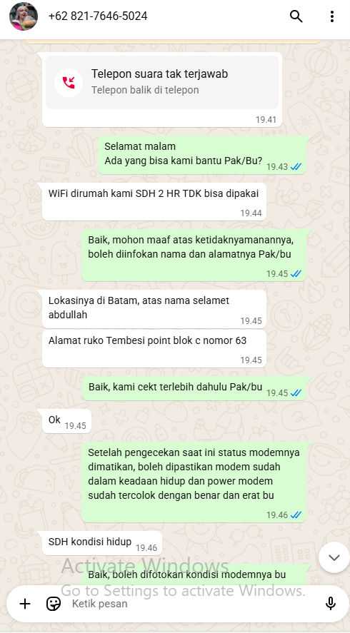 | Layanan | Two Play (Telepon+Internet up to 12 Mbps) 1 paket - PSB23-000768 |